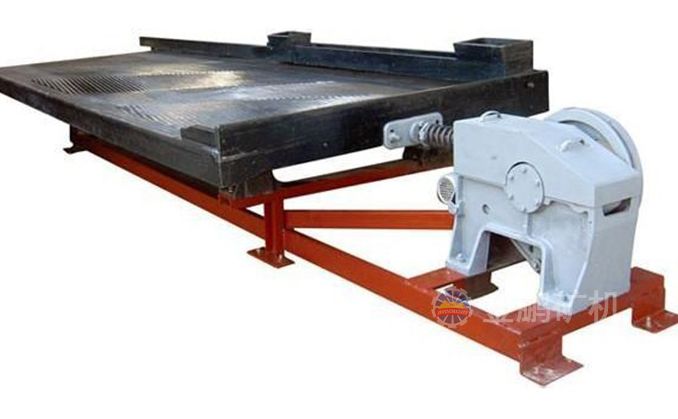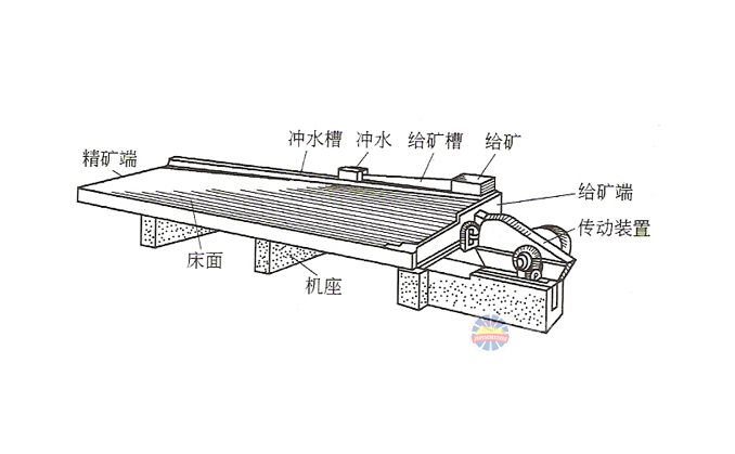 搖床分選是在床面和橫向水流的共同作用下實現的,床面上床條或刻槽是縱向的,與水流方向近于垂直,水流橫向流過時在溝槽內形成渦流,渦流和床面搖動的共同作用可使礦砂層松散并按密度分層。