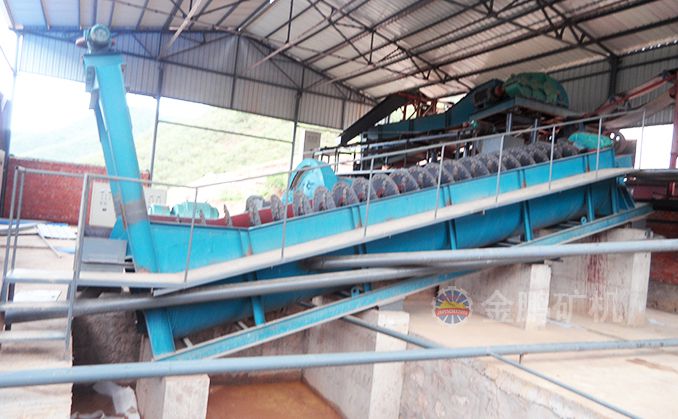 經破磨至合理細度的鉻礦石細料,通過螺旋分級機借助固體顆粒的比重不同而在液體中沉淀的速度的不同,對礦石混合物進行清洗、分級。再用跳汰機、搖床對物料進行洗選,運輸至螺旋溜槽分選細粒度的礦粉,篩分之后經過送入浮選機或磁選機,進入浮選的精礦經過濃縮機脫水,繼續送入烘干機烘干得到可以使用的干精礦或者二次研磨繼續提取礦物。